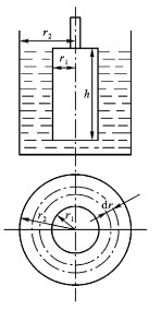 運動為穩態的 ,即連續性方程和運動方程的時間導數均為零 ;6) 系統恒溫.在內外筒間距旋轉軸 r 處取厚度為 d r 的窄環. 考慮到條件 5) ,窄環流體作恒速流動 ,角加速度為零 ,所受合力矩必須為零 ,則窄環內側和外側所受的剪切力矩相等. 由于窄環是任意取的 ,故流體內各流層所受剪切力矩相等 ,均等于內筒轉動力矩. 各流層剪切力矩為